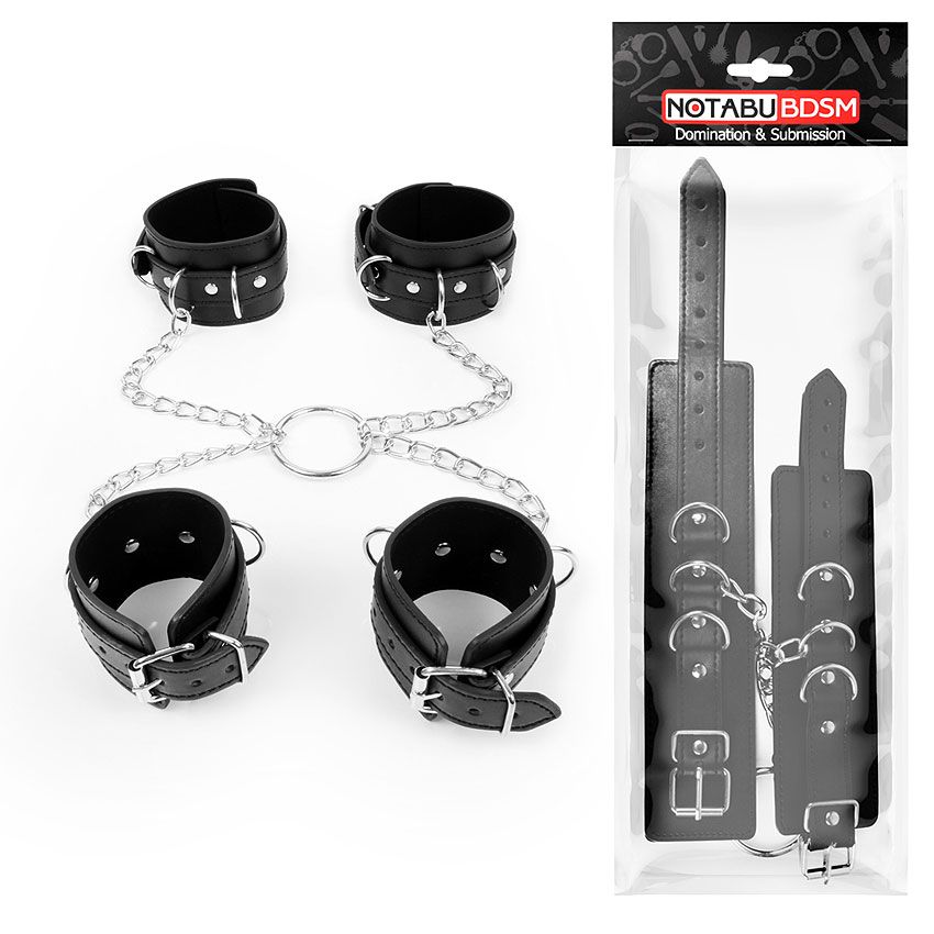 БДСМ-аксессуар придаст остроты сексу, подарит яркие, незабываемые эмоции! В комплект входят наручники и оковы, размер которых регулируется с помощью ремней. При необходимости все изделия скрепляются друг с другом с помощью металлических цепочек. Интимный аксессуар поможет усилить доминирование одного участника любовной игры и подчеркнёт подчинённое положение другого.