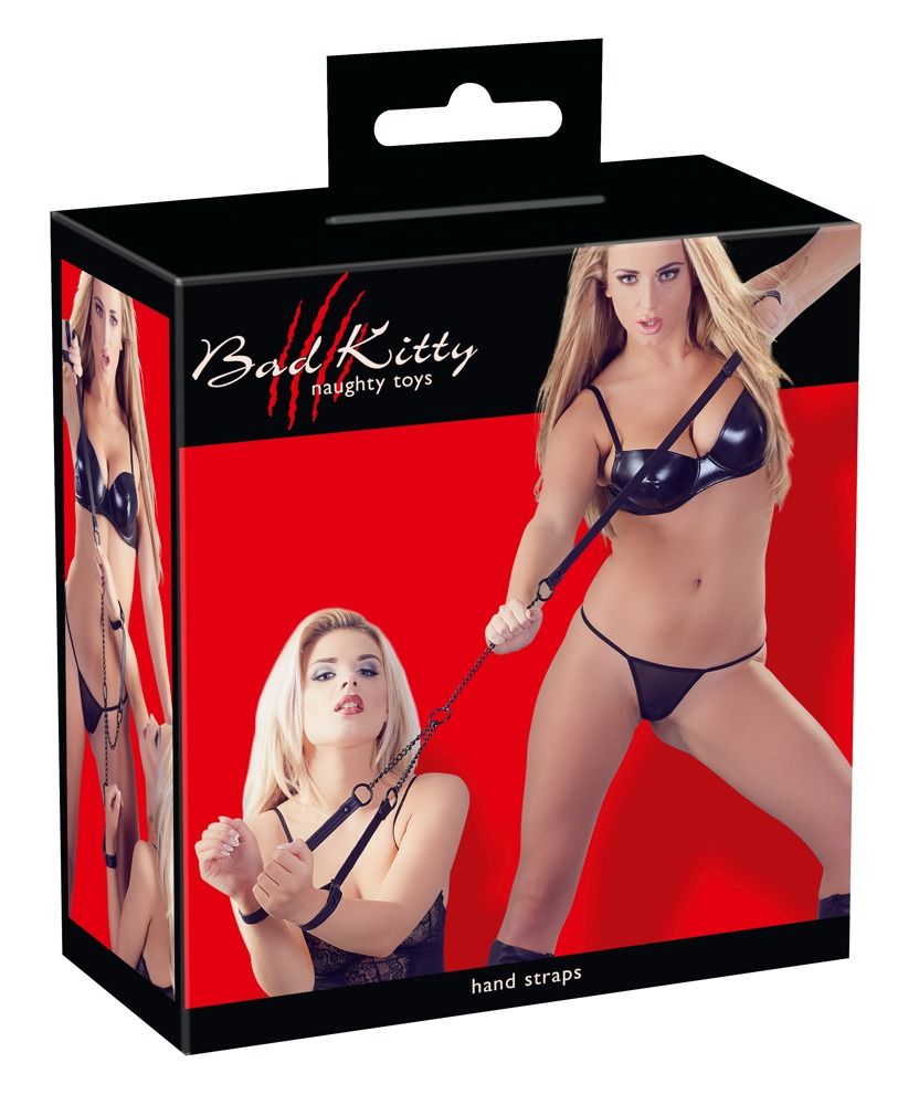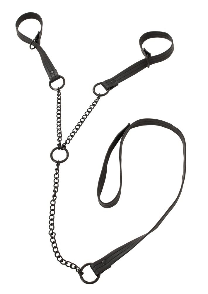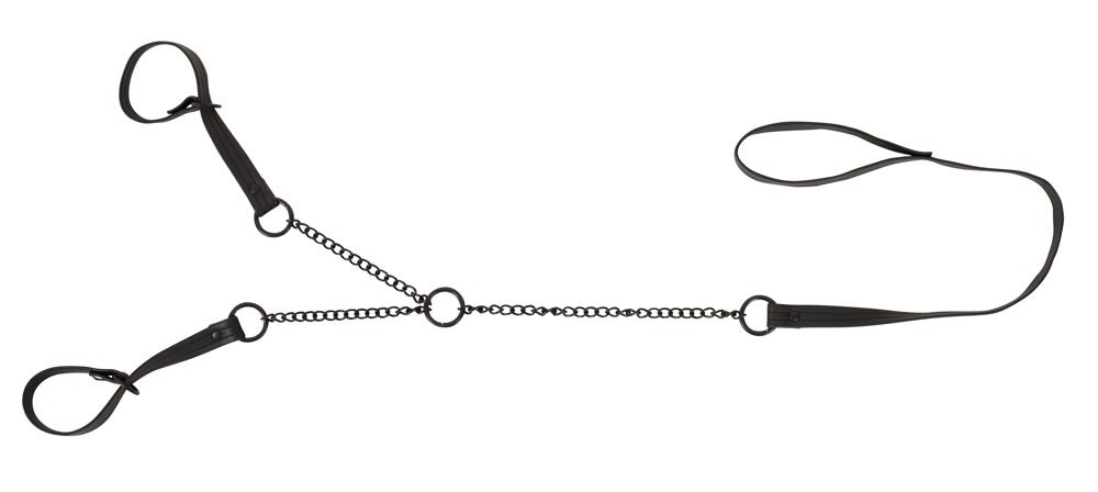 Тонкие наручники с поводком из мягкой искусственной кожи. Петли регулируются по диаметру, плотно облегая кисти и надежно фиксируя партнера при натяжении поводка. Длина поводка с петлей - 90 см.
