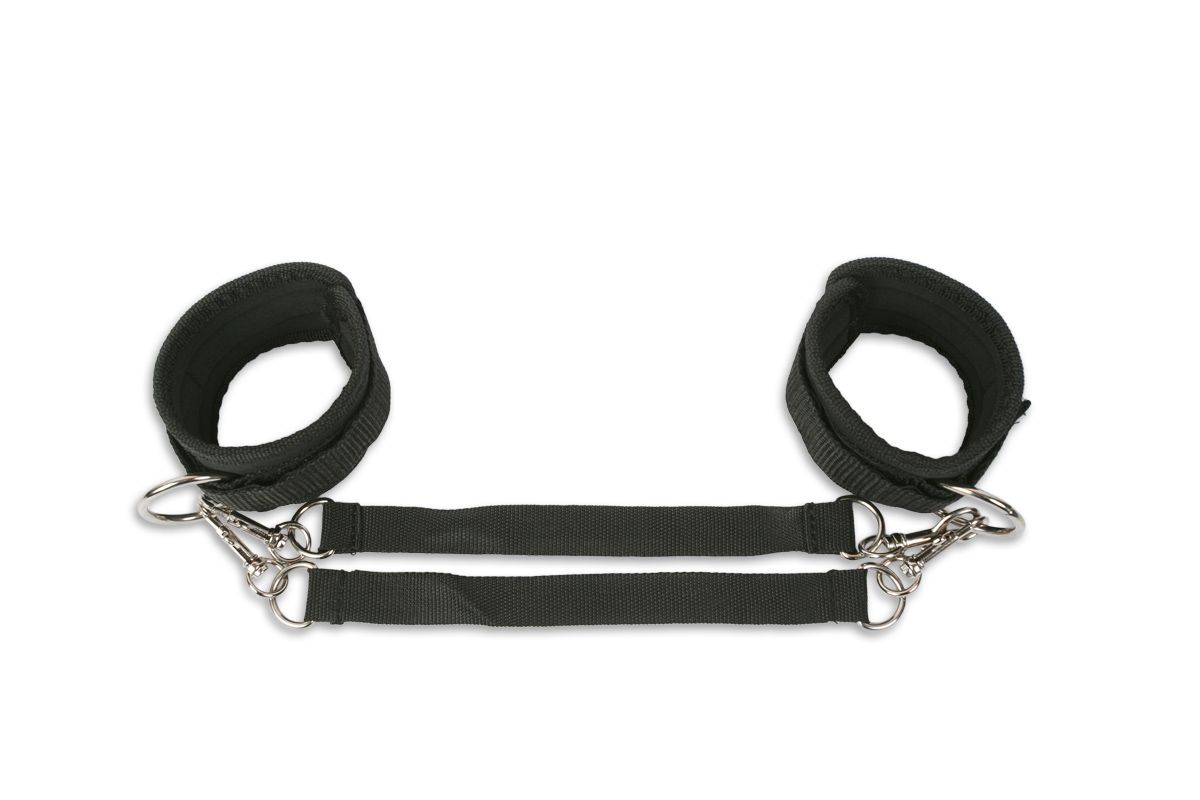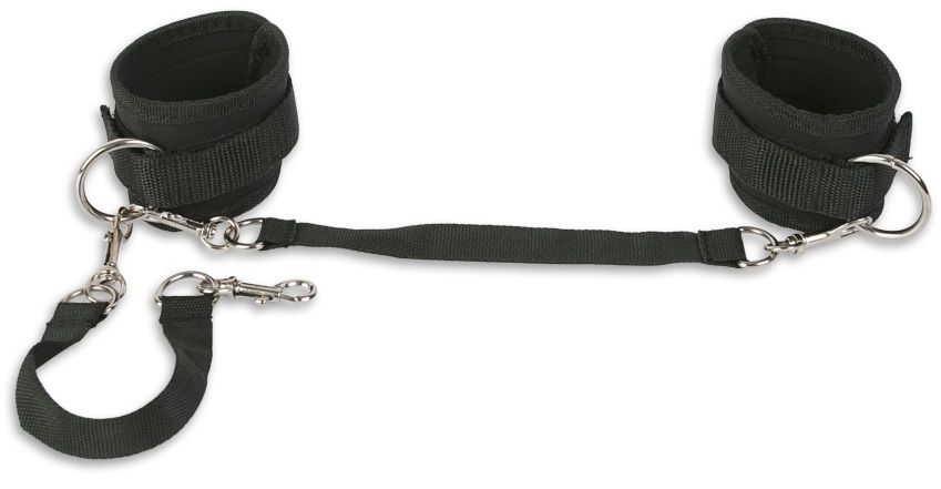 Вам нравится быть связанным, но хочет сохранять в таком положении комфорт? Воспользуйтесь набором мягких фиксаторов! Пара манжет для рук и ошейник с поводком – что еще нужно для эффектной ролевой игры? Элементы комплекта выполнены из мягкого и приятного на ощупь нейлона. Манжеты крепятся к ошейнику ремешками с карабинами. По размеру бондаж регулируется с помощью липучек. Создавайте разные комбинации, и эффективно фиксируйте своего Саба! Длина манжетов - 40 см. Длина ошейника - 60 см.