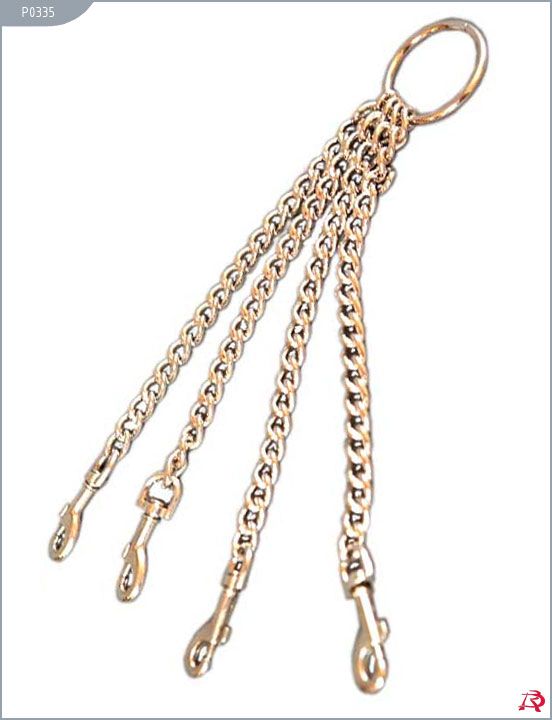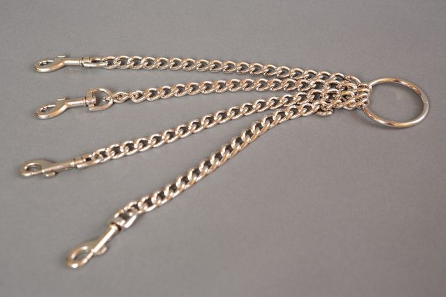 Цепь с центральным кольцом и четырьмя карабинами может использоваться для соединения наручников и поножей, а также других девайсов БДСМ-тематики. Она выполнена из прочного металла. Готовясь к жарким играм в стиле БДСМ, не стоит забывать о таких мелочах. Ведь надежное крепление имеет особое значение для комфорта и безопасности. Длина цепи - 35 см.