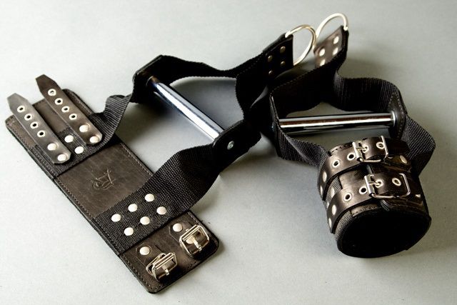 Специальные наручи с хромированной трубкой для подвешивания - это ваш помощник в реализации самых необузданных фантазий в БДСМ-сессиях. Они не нарушают кровообращение, просты в применении и обеспечивают надежную фиксацию. Данная модель изготовлена из натуральной кожи черного цвета. Мягкая подкладка из синтетической пены уменьшает вероятность натирания кожи во время использования. Фиксируются при помощи двух ремешков с пряжками. Наручи позволяют держаться за стальные трубки руками во время экшена.