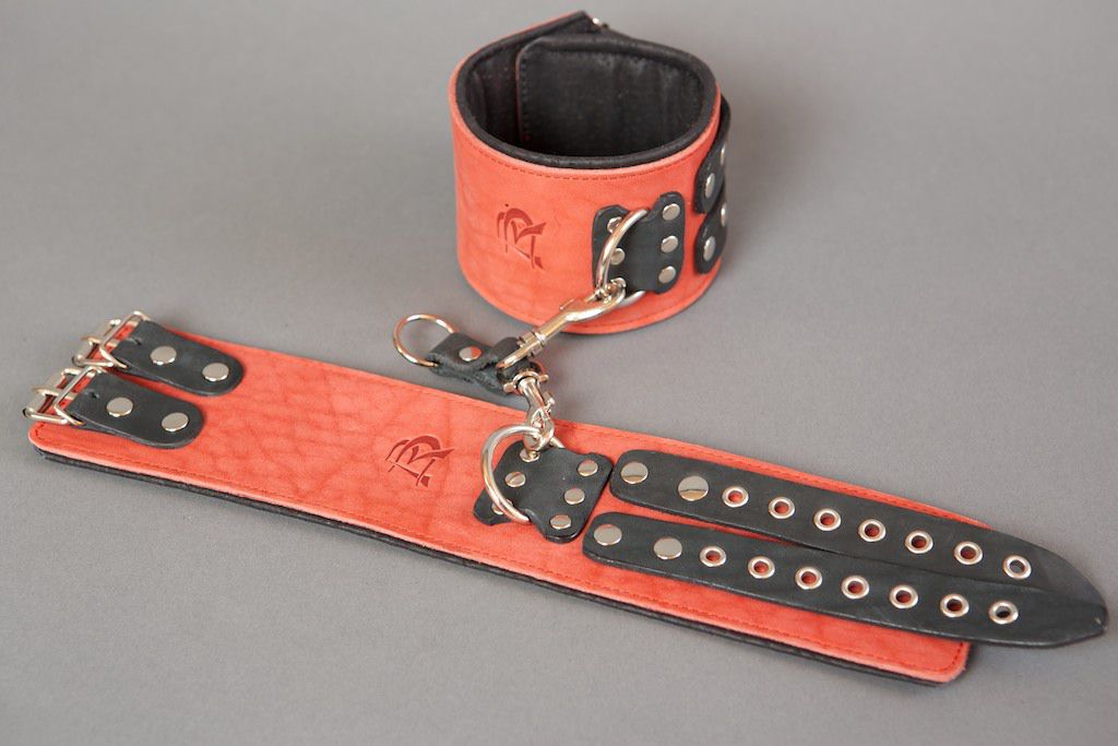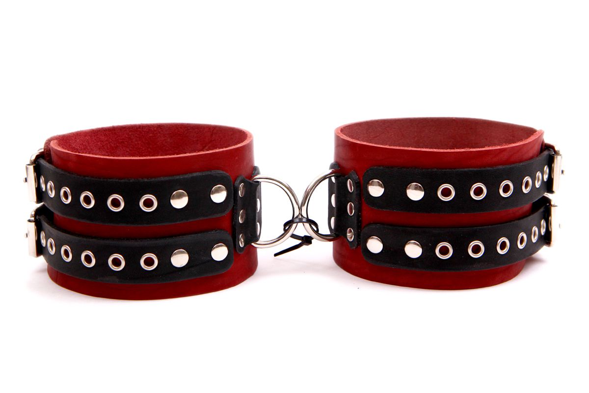 Широкие поножи ручной работы — это Ваш помощник в реализации самых необузданных БДСМ фантазий. Они не нарушают кровообращение, просты в применении и обеспечивают надежную фиксацию. Данная модель изготовлена из натуральной кожи черного и красного цвета. Специальная выделка обеспечивает жесткую фиксацию. Удобная ремневая регулировка размера и D-образные кольца и мягкая подкладка(пена) обеспечивает комфорт и безопасность. Ширина - 7 см.