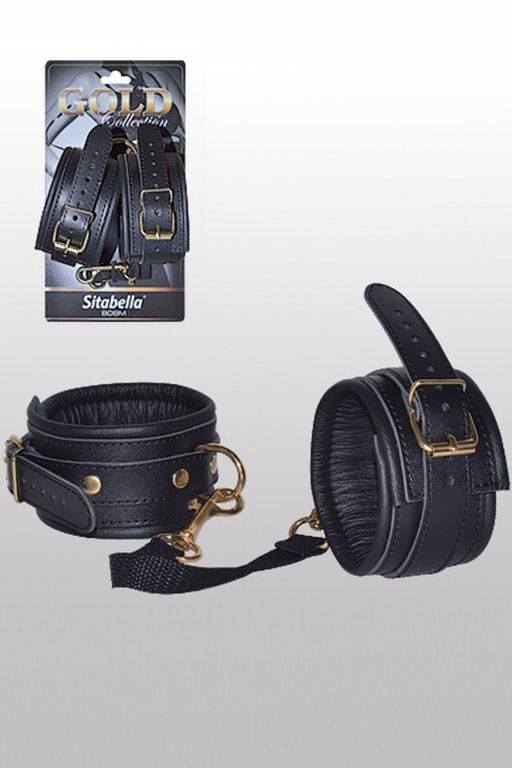 Наручники от Sitabella из коллекции GOLD Collection обеспечат вам надежную фиксацию благодаря крепким ремешкам. Запястья или лодыжки — выбирать вам. Вы можете отстегнуть тканевую шлейку и использовать оковы как украшение для тела — черная кожа с золотыми вставками прекрасно справится и с этой ролью.