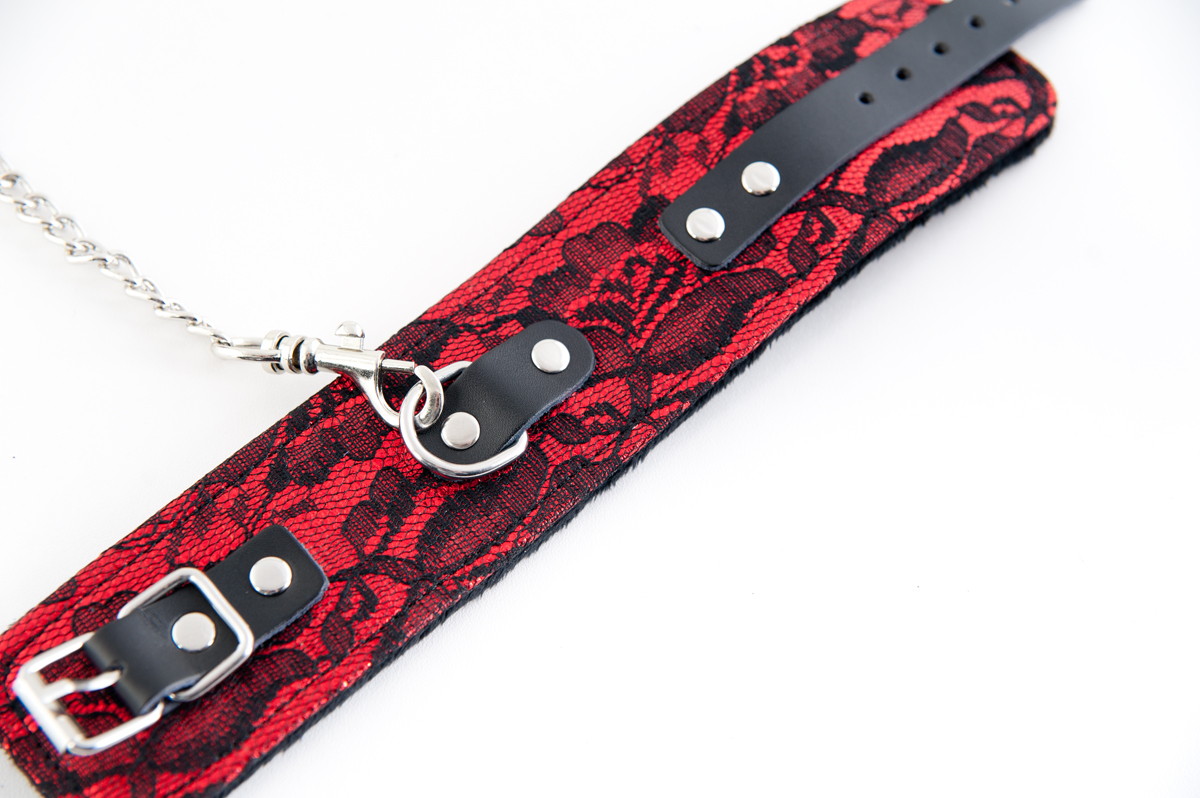 Изящное черное кружево на ярко - красном фоне. Более сексуального сочетания не существует. Что это - винтажное украшение или изысканное ограничение свободы - решайте вместе с партнером.