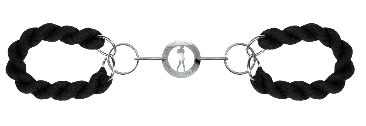 Черные кандалы, изготовленные из хромированной стали и плотного хлопка. Имеют вид жгута, можно использовать как наручи, так и поножи. Размер не регулируется. Диаметр жгута - 2 см. Внутренний диаметр браслетов - 4,5 см., внешний - 8 см.