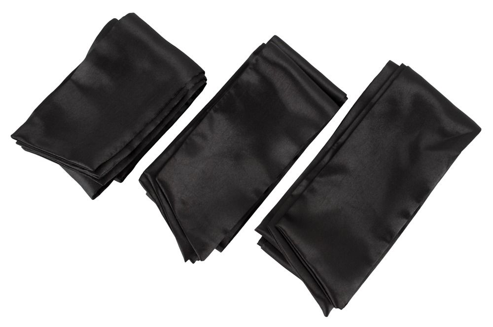 Набор из 5 атласных лент для нежной фиксации Satin Ribbon Set. В него входит длинная лента для завязывания глаз, а также две пары лент - для рук и ног. Длина ленты для глаз - 150 см., ширина - 7,5 см. Длина лент для рук/ног - 95 см., ширина - 7,5 см.