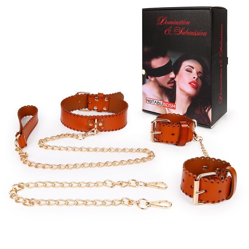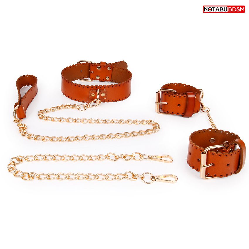 Великолепный набор аксессуаров для любителей БДСМ. В комплект входят наручники и ошейник с цепочкой-поводком. Изделия имеют возможность регулировки размера, изготовлены из кожи. Набор упакован в большую красивую коробку, которая будет хорошо смотреться. В комплекте: наручники и ошейник с поводком.