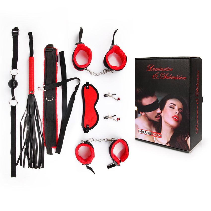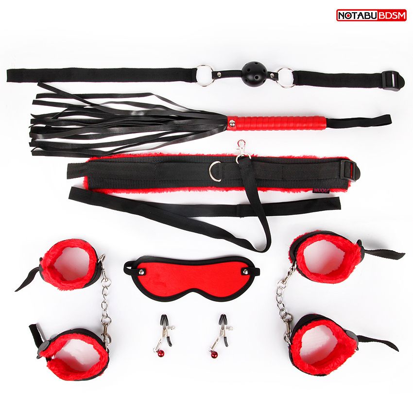 Великолепный набор аксессуаров для любителей БДСМ. В комплект входят наручники, оковы, ошейник с цепочкой-поводком, фиксатор, плеть, кляп, маска.Наручники, оковы, ошейник и маска снабжены специальной внутренней накладкой, предотвращающей натирание кожи. Также изделия имеют возможность регулирования размера. Плеть-флоггер состоит из хвостов и удобной рукоятки с металлическими вставками и петлёй для подвешивания на крючок. Кляп оснащён шариком с отверстиями для дыхания. Набор украшен декоративными накладками в военной тематике, упакован в большую красивую коробку.