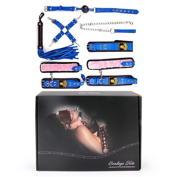 Великолепный набор аксессуаров для любителей БДСМ. Кляп, наручники, оковы и ошейник снабжены специальной внутренней меховой накладкой, предотвращающей натирание кожи. Также изделия имеют возможность регулирования размера. Плеть-флогер состоит из хвостов и удобной рукоятки с петлёй для подвешивания на крючок. Кляп оснащён шариком с отверстиями для дыхания. На поверхности наручников, оков, ошейника и маски расположены декоративные нашивки в военной тематике. В комплекте: наручники, оковы, ошейник с цепочкой-поводком, фиксатор, плеть, кляп. Длина плети - 39 см.