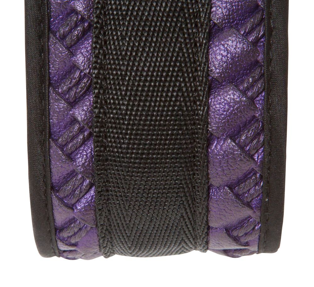 Чёрно-фиолетовый набор для бондажа Bondage Set. Включает в себя плеть, ошейник с поводком и наручники. Длина плети - 38 см. Ширина ошейника - 5,5 см. Длина поводка - 106 см. Ширина манжет - 9 см.