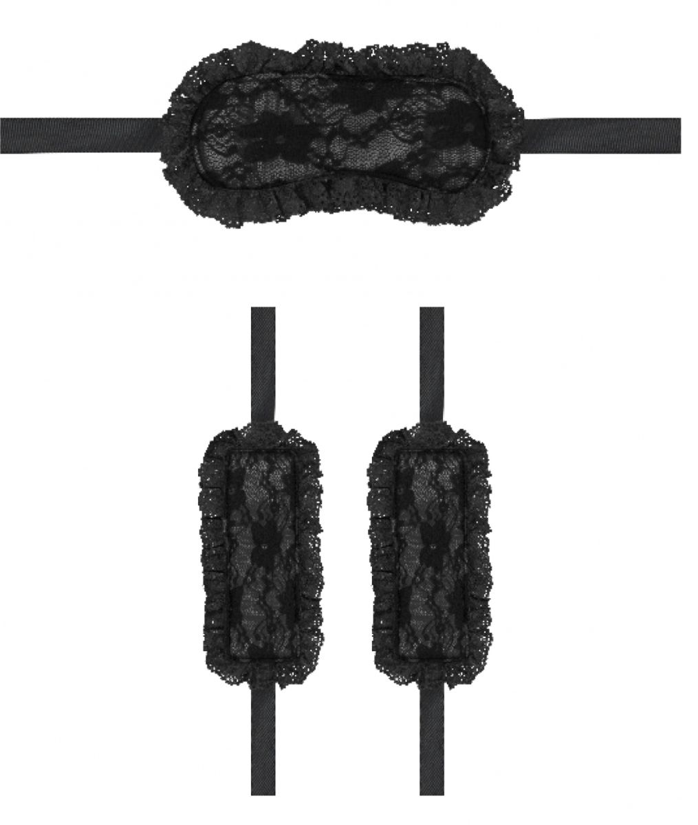 Introductory Bondage Kit №7 – набор, состоящий из 3 предметов для эротических ролевых игр и практик БДСМ. В комплект входят кружевная маска на глаза закрытого типа и два кружевных манжета, имитирующих наручники без сцепки.