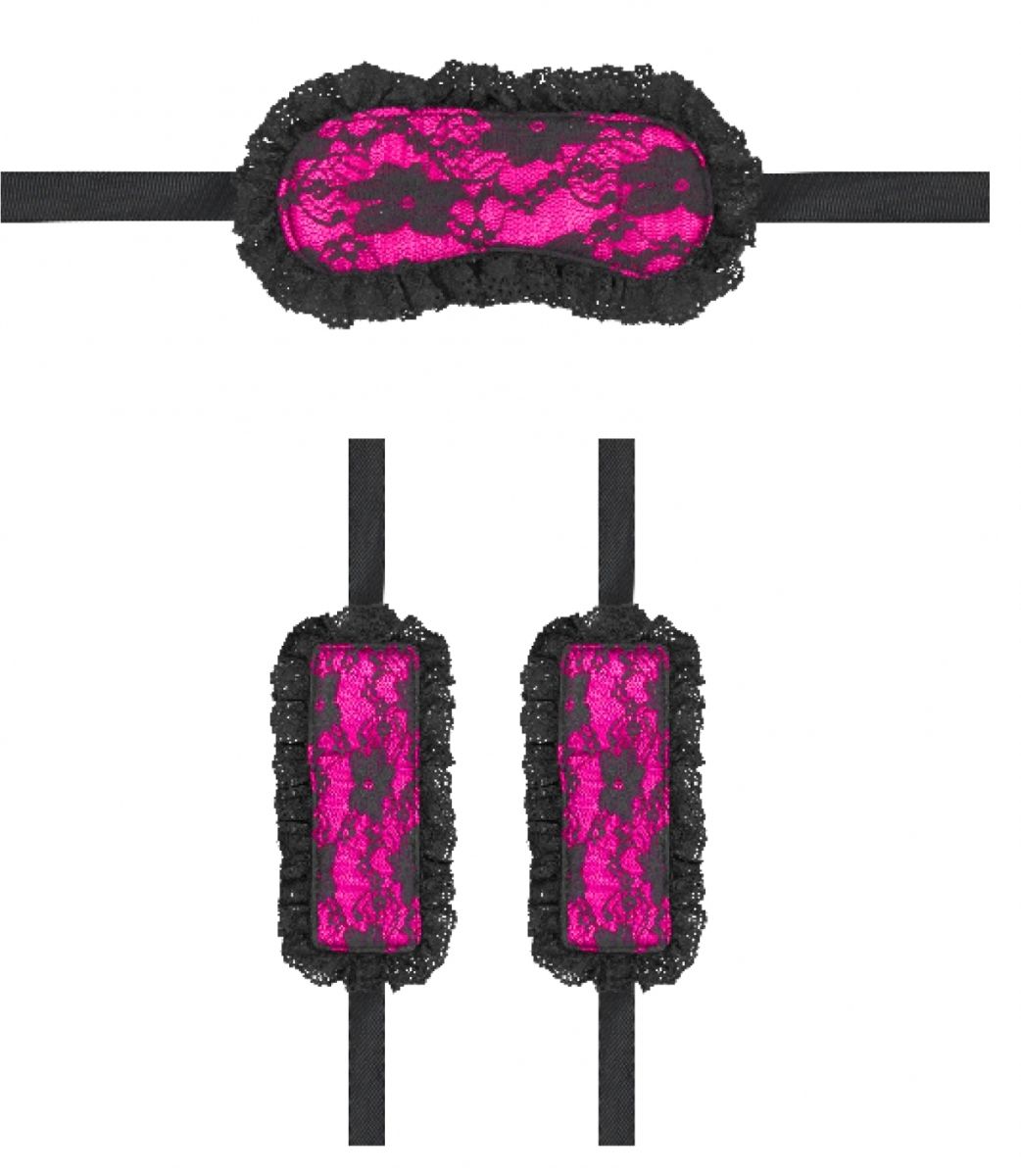 Introductory Bondage Kit №7 – набор, состоящий из 3 предметов для эротических ролевых игр и практик БДСМ. В комплект входят кружевная маска на глаза закрытого типа и два кружевных манжета, имитирующих наручники без сцепки.