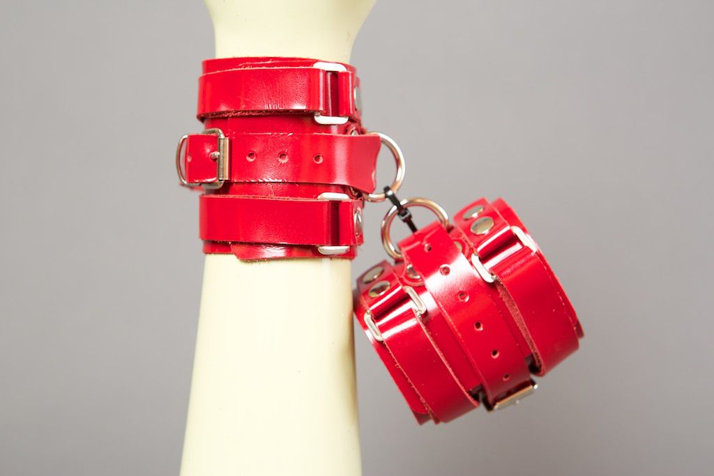 Наручники-напульсники ручной работы фирмы Подиум СПб - это Ваш помощник в реализации самых необузданных БДСМ-фантазий. Они не нарушают кровообращение, просты в применении и обеспечивают надежную фиксацию. Данная модель изготовлена из натуральной лаковой кожи с металлической фурнитурой. Ремни наручников позволяют регулировать размер и застегиваются на пряжку. Ширина - 7 см. Максимальный обхват - 31 см., минимальный - 26 см.