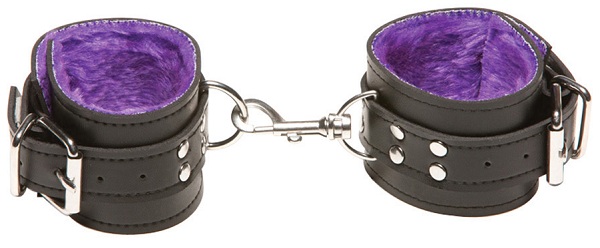 Стильные кожаные наручники с мягким мехом внутри станут неизменным аксессуаром ваших интимных игр. Браслеты на короткой сцепке из металлического карабина сильно стесняют движения, и вы или ваш партнер окажетесь абсолютно беззащитным в этом сексуальном бою. Диаметр наручников легко регулируется, поэтому вы всегда сможете контролировать ситуацию. Мех с внутренней стороны мягко окутывает кожу, не причиняя ей вреда. А фиолетовый цвет расскажет вашему партнеру, что вы открыты для экспериментов!