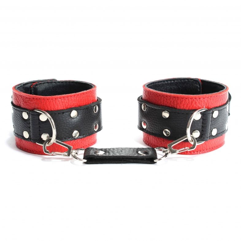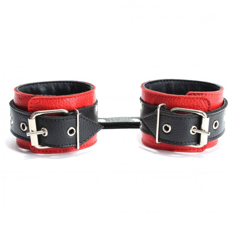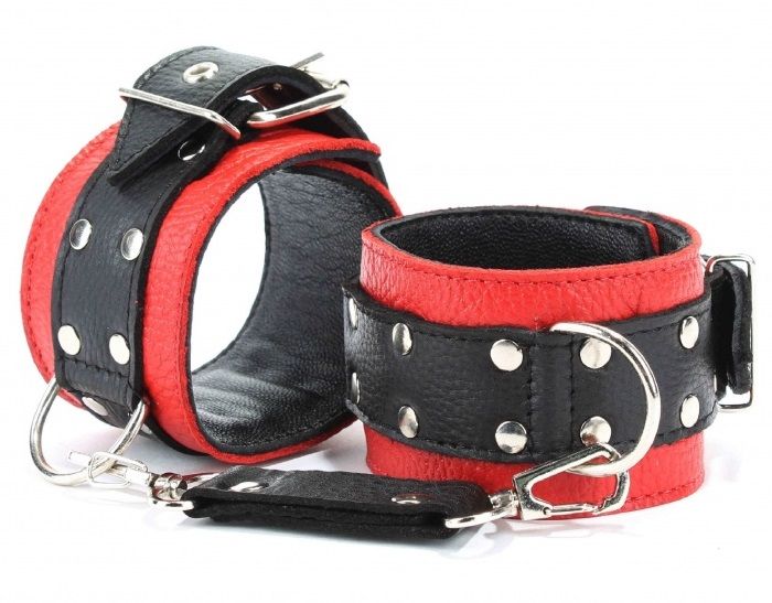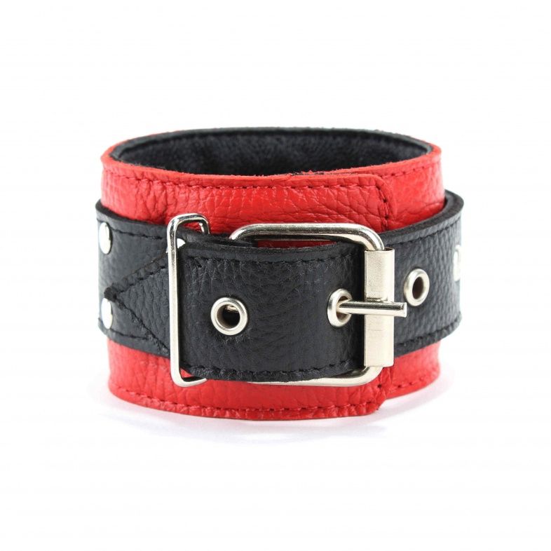 Красно-чёрные наручи из натуральной кожи БДСМ арсенал 51003ars
