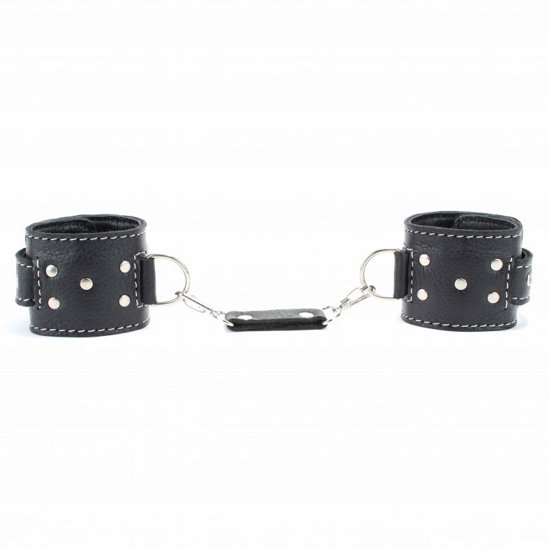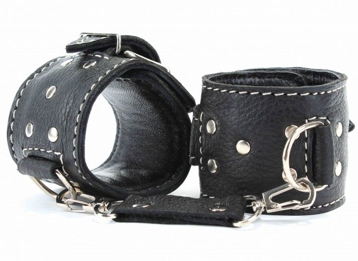 Чёрные кожаные оковы с крупной строчкой БДСМ арсенал 56010ars