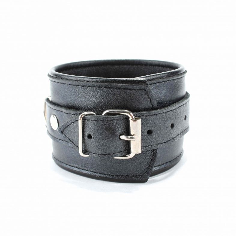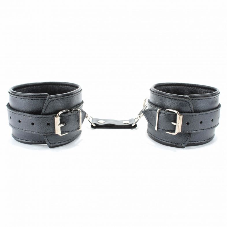 Оживить эротические игры Вам помогут наручники. Этот интимный аксессуар пользуется успехом у мужчин. Выполненные в черном цвете и украшены прочными ремешками. Модный интимный аксессуар не сдавливает и не нарушает кровообращение, так как изготовлен из мягкой кожи. Чтобы любимая никуда не убежала, наручники соединены короткой перемычкой. Длина манжет - 25,5 см., ширина - 5,7 см. Длина перемычки - 6 см.