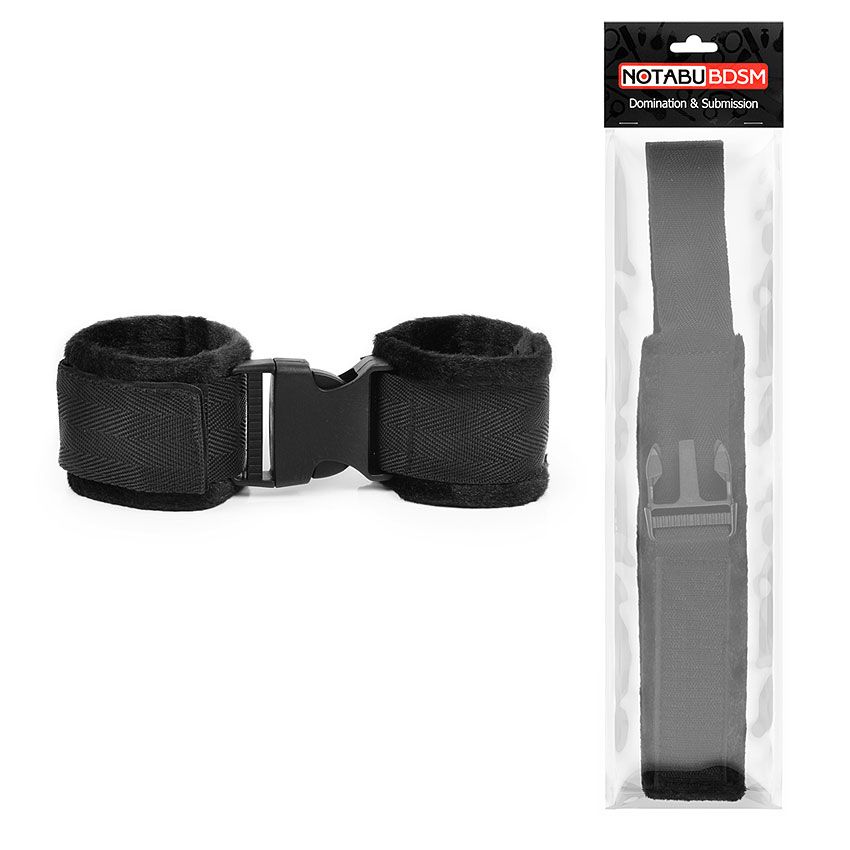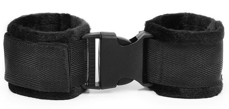 Оригинальные наручники для любителей нестандартных эротических забав. Отделаны мягкой тканью, препятствующей натиранию кожи. Снабжены застёжкой, которой можно соединить наручники между собой. На запястьях наручники закрепляются с помощью липучек.