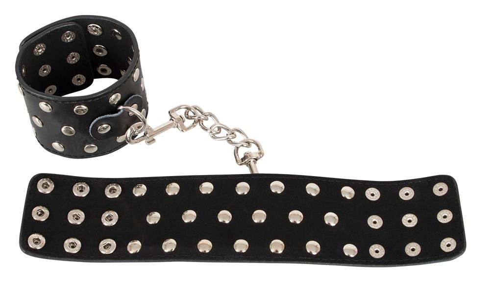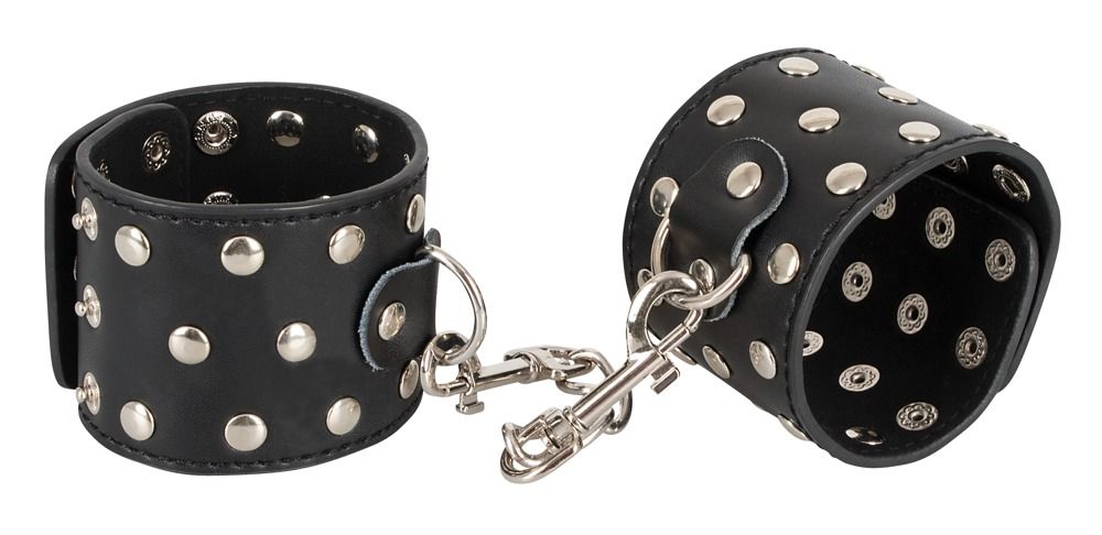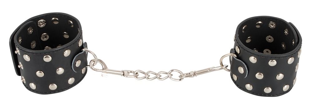 Чёрные наручи с фиксацией цепочкой на двух карабинах