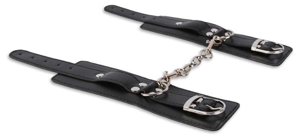 Качественный аксессуар для качественной игры БДСМ! Широкие манжеты из кожзама – универсальный элемент, который не только выполнит свои функции, но и послужит украшением. Манжеты изготовлены из качественного кожзаменителя. Края изделия отделаны контрастными швами. Сверху манжет есть ремешок с пряжкой, который одновременно выполняет декорирующую роль и регулирует аксессуар по размеру. Манжеты снабжены кольцами и карабином, что превращает их в фиксаторы для рук и ног. Длина каждой манжеты - 28 см. Ширина манжет - 6 см.