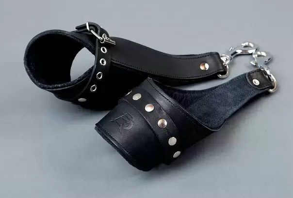 Специальные наручи для подвешивания - Ваш помощник в реализации самых необузданных фантазий в БДСМ-сессиях. Они не нарушают кровообращение, просты в применении и обеспечивают надежную фиксацию. Данная модель изготовлена из натуральной кожи с металлической фурнитурой. Мягкая подкладка из синтетической пены уменьшает вероятность натирания кожи во время использования. Фиксируются при помощи ремешков. Анатомическая конструкция при правильном использовании исключает вероятность получения травмы. Ширина - 7,5 см. Максимальный обхват - 26 см/, минимальный - 17,5 см.