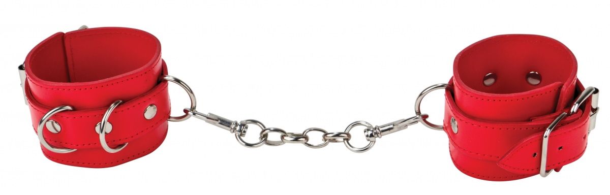 Оковы для рук из качественной кожи красного цвета для ролевых игр. Эти элегантные наручники удобные, долговечные, для смелых экспериментов в эротических играх с партнёром. Оковы для рук подходят для запястий и лодыжек ног. Размер наручников - до 25 см. в окружности.
