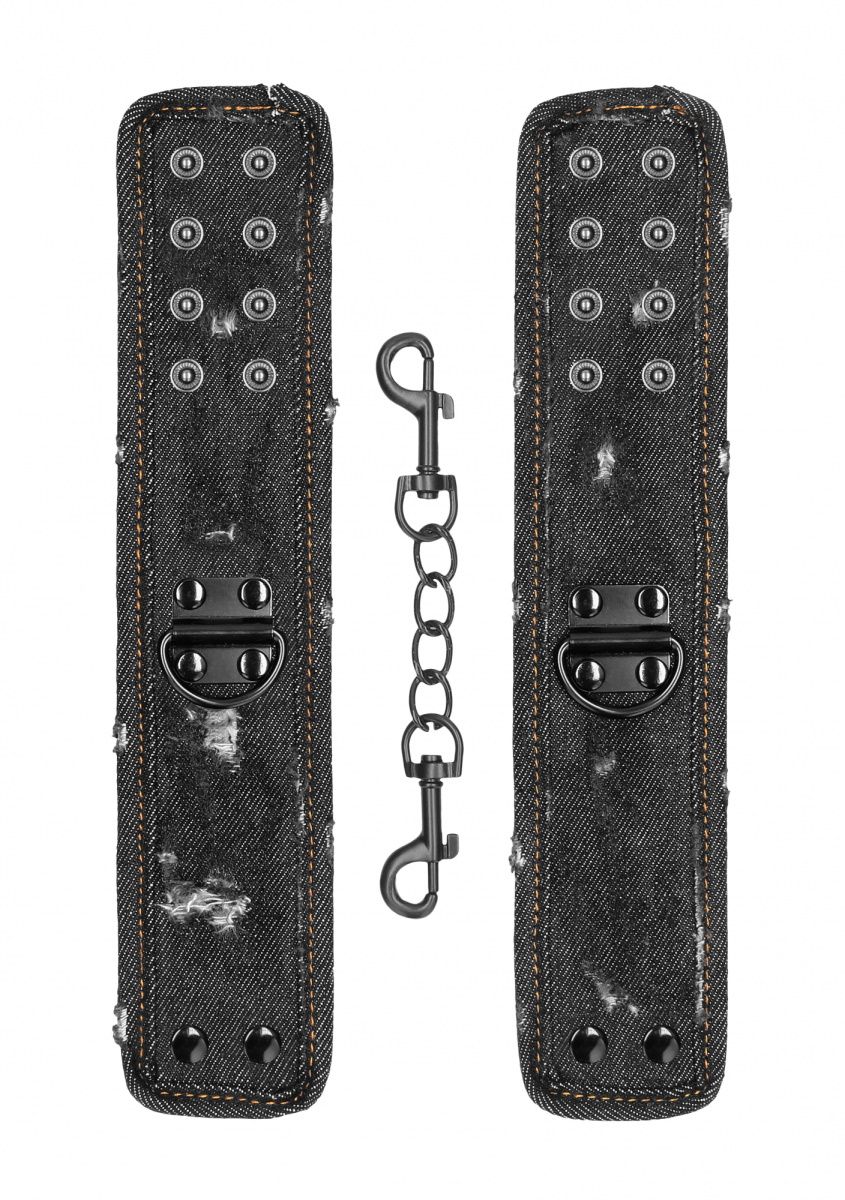 Roughend Denim Style – джинсовые наручники с цепочкой предназначены для обездвиживания партнера во время эротических ролевых игр и БДСМ-практик. Наручники выполнены в классическом стиле из качественной джинсовой ткани с элегантной строчкой. Наручники крепятся на металлических кнопках, для того, чтобы легко подобрать оптимальный размер, есть 8 пар крепежей. Наручники соединяются между собой при помощи маленькой металлической цепочки с универсальными карабинами на концах. Каждый манжет оснащен тремя металлическими кольцами. Наручники предназначены для ограничения свободы движения партнера. Оденьте их на запястья и отрегулируйте по размеру. Все элементы также можно использовать по отдельности или в сочетании с другими совместимыми аксессуарами.