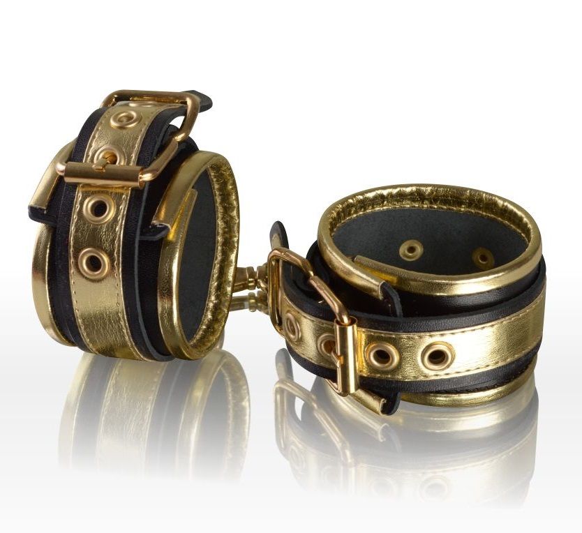 Золотисто-чёрные кожаные наручи