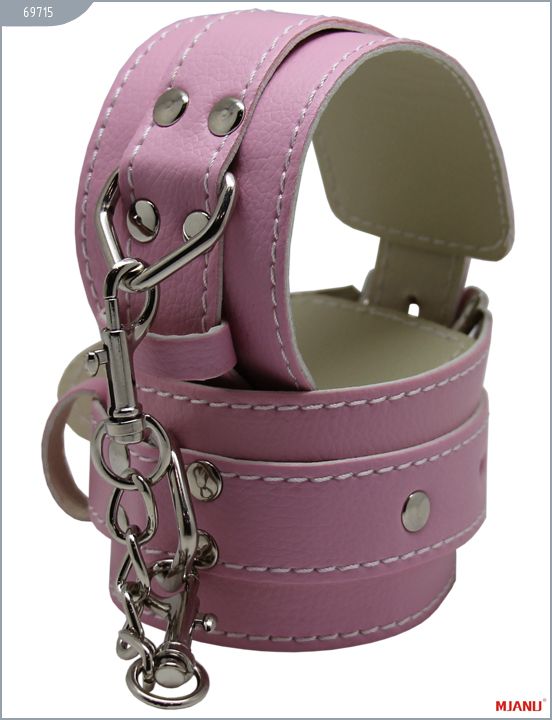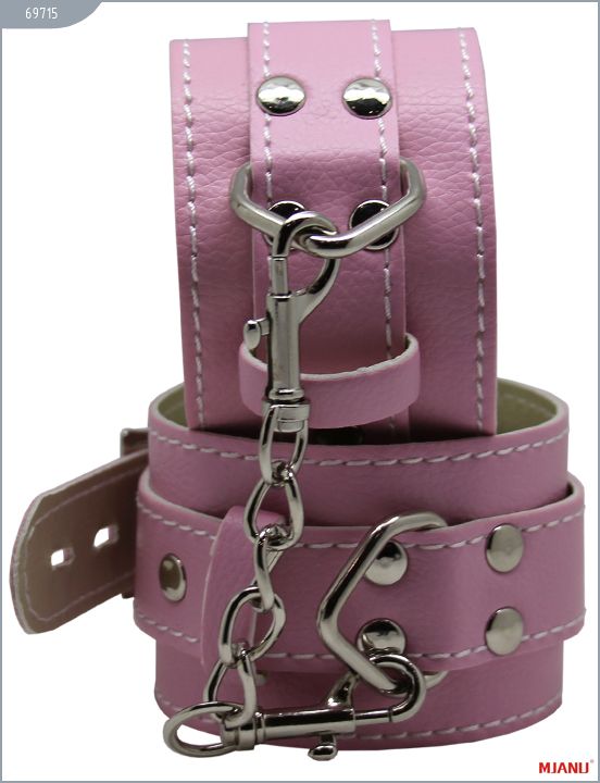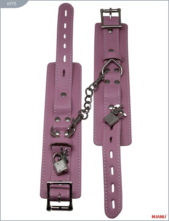 Наручники Mjanu — высококачественное изделие с современной фурнитурой, аккуратными креплениями и отличной контрастной белой строчкой. Изготавливаются из натуральной кожи c PU покрытием, которая сохраняет свойство натуральной кожи пропускать воздух и устойчивость к деформации, но в отличии от натуральной кожи имеет более привлекательный внешний вид. Соединяются наручники между собой короткой цепочкой с двумя карабинами на концах. Они не нарушают кровообращение и обеспечивают надёжную фиксацию с помощью пары замков. Размер регулируется при помощи ремешков. Длина с ремешком - 35 см., ширина - 5,5 см.