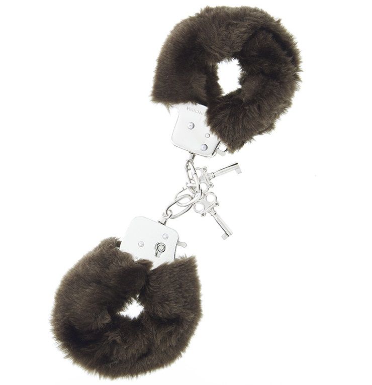 Металлические наручники в пушистом чехле из искусственного меха коричневого цвета. Замок фиксируется при помощи ключей. Затейте необычную игру!