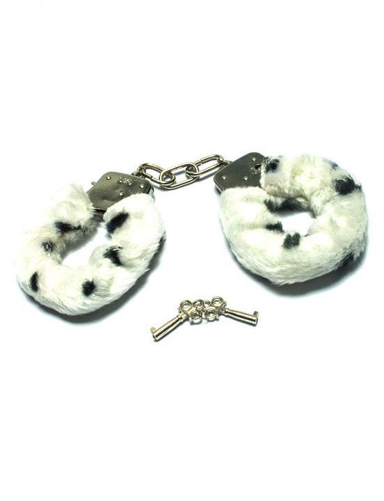 Металлические наручники с бело-чёрным мехом