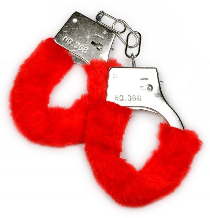 Металлические наручники с красной опушкой и ключиком Пикантные штучки DP300
