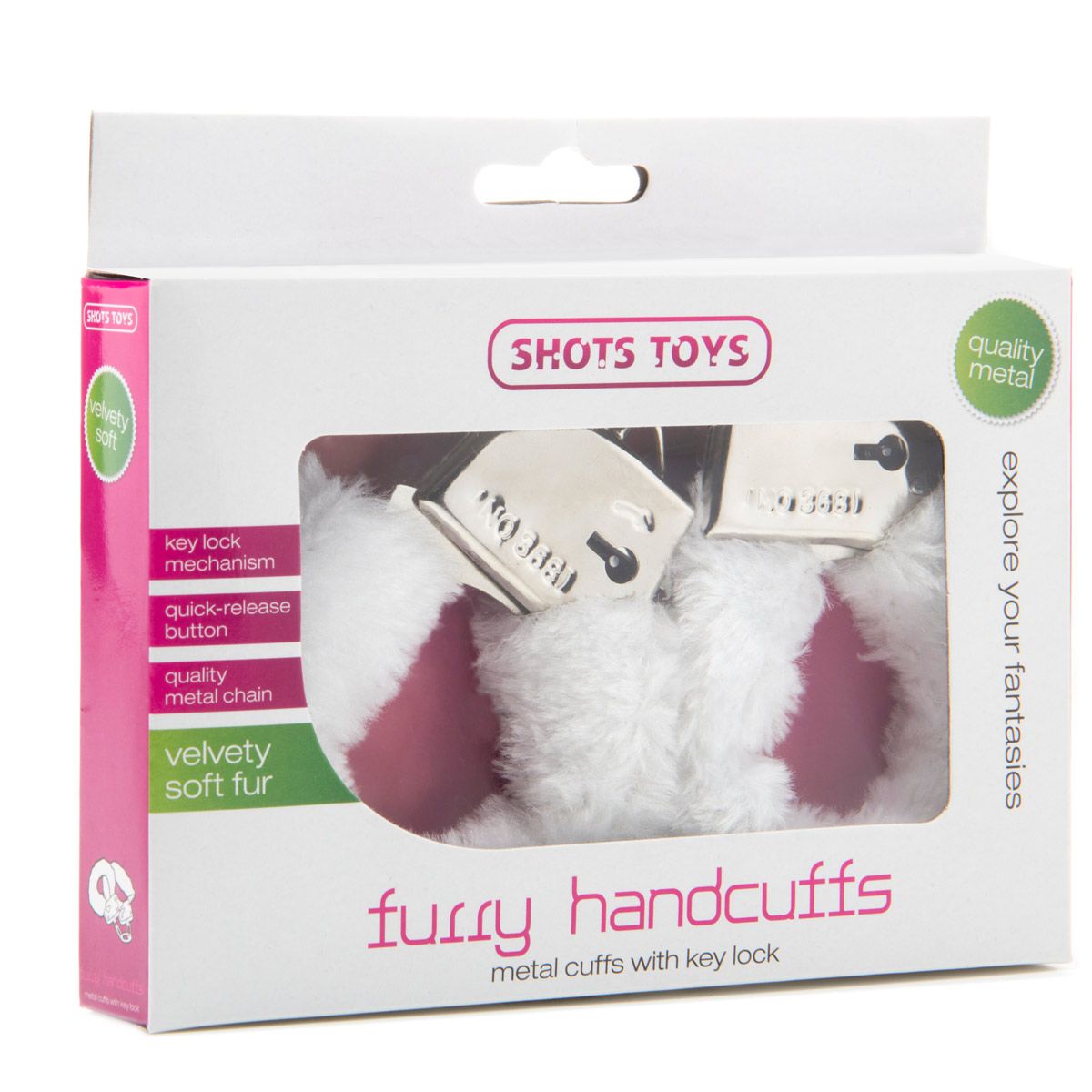 Белые меховые наручники на металлической цепочке Shots Media BV SHT255WHT
