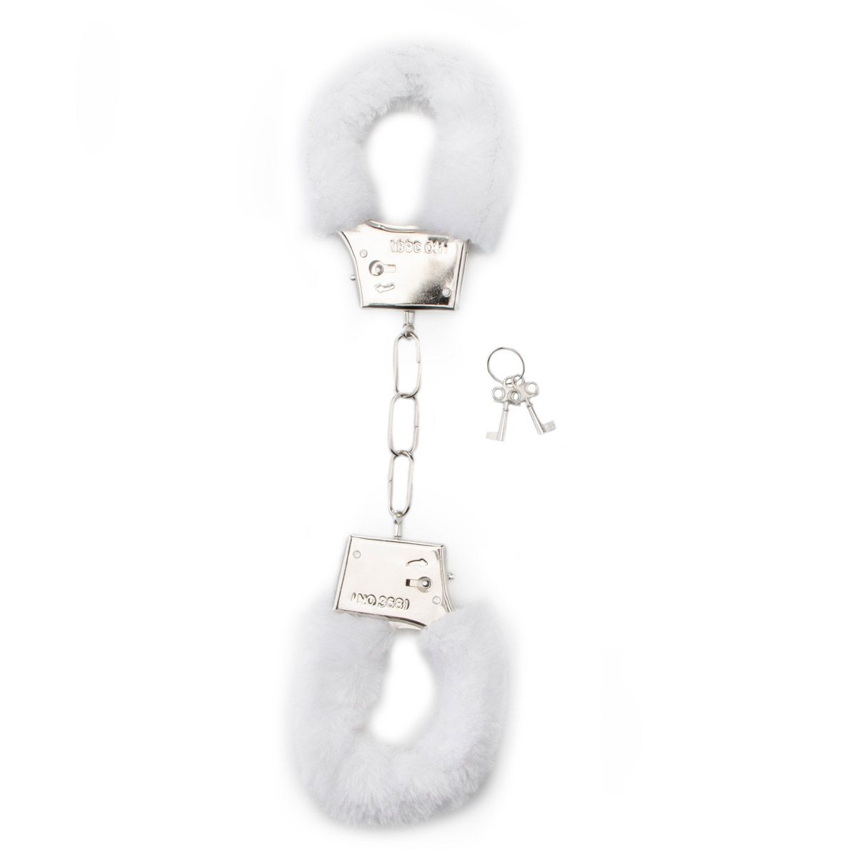 Белые меховые наручники на металлической цепочке