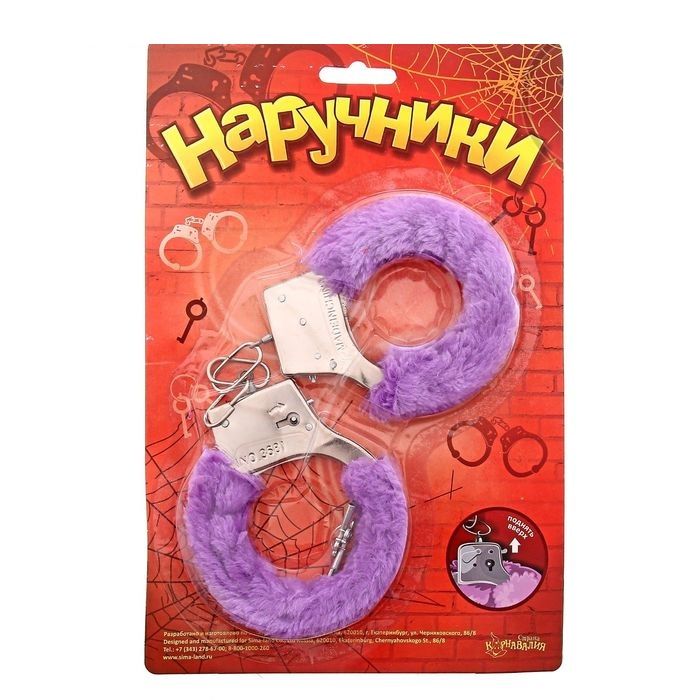 Металлические наручники с фиолетовым плюшевым мехом Сима-Ленд 329111