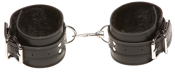 Если на ваших ножках эти чёрные оковы из искусственной кожи, свобода движений – не ваш удел. Стоит затянуть ремешки проклёпанных браслетов и соединить их при помощи карабина, чтобы оказаться в полной власти «верхнего». Внутренняя поверхность, сделанная их мягкого чёрного меха, оградит кожу лодыжек от натирания при смене положения.