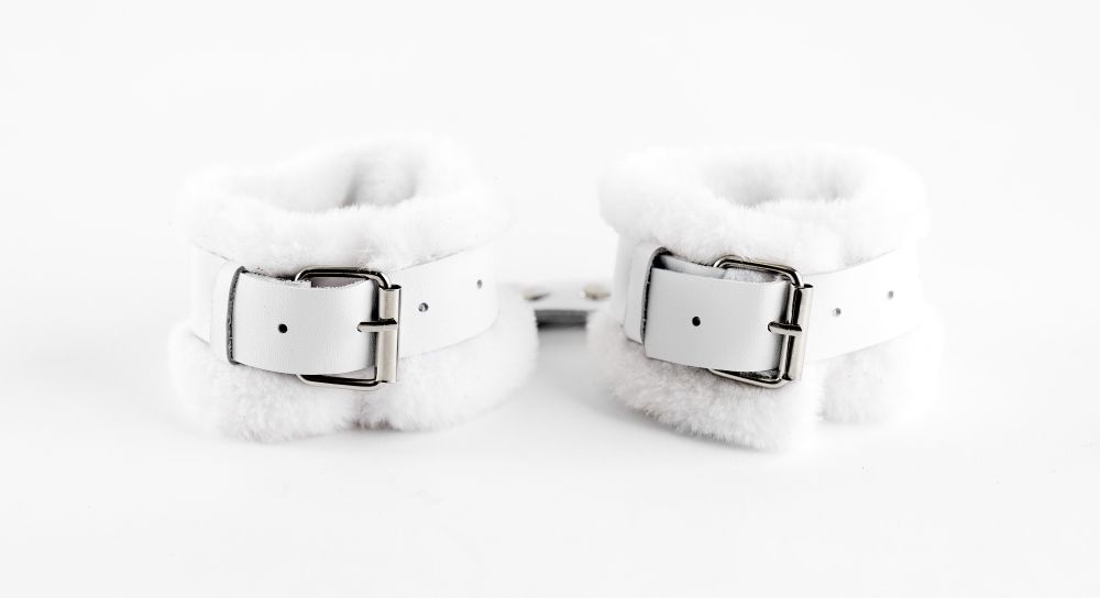 Оковы из нежнейшего белоснежного меха. Красивый и функциональный аксессуар. Ремешки выполнены из качественной натуральной кожи белого цвета. Надежная фурнитура из металла. Размер регулируется с помощью ремешков, Ширина - 6 см. Обхват - 15-30 см.