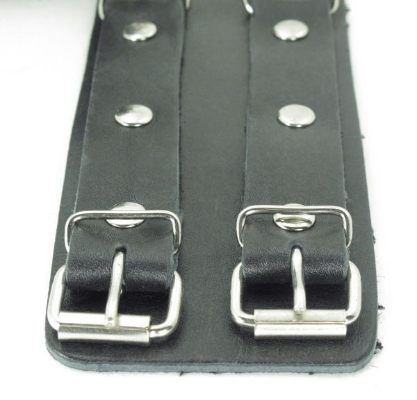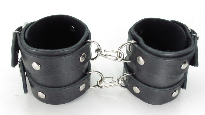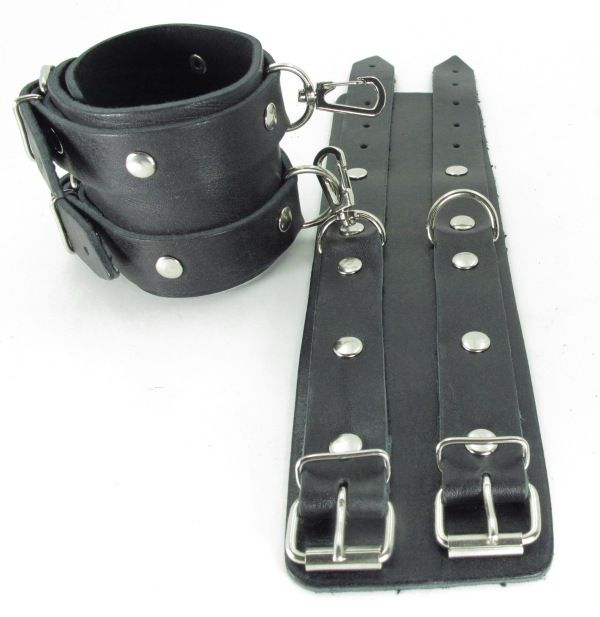 Черные кожаные оковы с двумя пряжками. 27,5 см, ширина- 7 см.