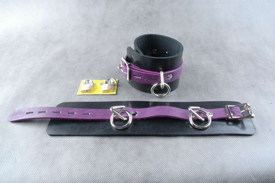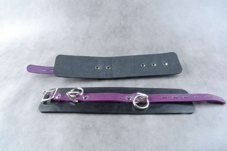 Наножники не подшитые, с двумя равносторонними D-треугольниками, без соединительной фиксации. Застежка ремешок с эллипсными отверстиями и запирающейся пряжкой «бабочкой» с замочком для фиксации. Прямоугольная база, с центральным ремнем поверх базы. Диаметр колец - 2 см. Ширина манжет - 6,5 см. Длина окружности манжеты от 18 до 28 см.