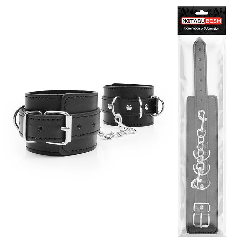 Великолепные оковы под кожу для любителей БДСМ-игр! В комплект входит прочная металлическая цепочка, которой при необходимости можно соединить изделия. Размер оков регулируется с помощью ремней.