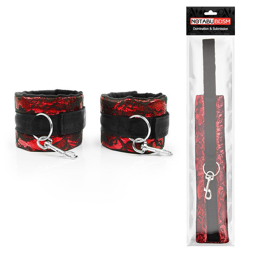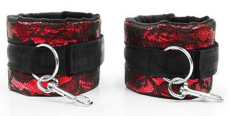 Оригинальные оковы для любителей нестандартных эротических забав. Внешняя поверхность изделий украшена кружевом, внутренняя имеет мягкую бархатистую прокладку, которая препятствует натиранию кожи. Оковы снабжены карабинами, благодаря которым изделия можно соединять между собой. Закрепляются они с помощью липучек. Интимные аксессуары просты в использовании, не требуют специального ухода.