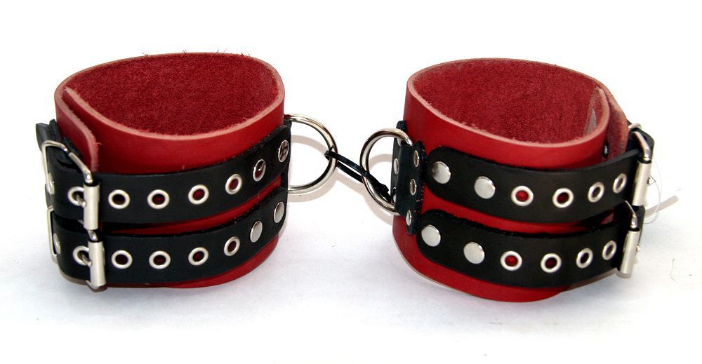 Широкие поножи ручной работы — это Ваш помощник в реализации самых необузданных БДСМ фантазий. Они не нарушают кровообращение, просты в применении и обеспечивают надежную фиксацию. Данная модель изготовлена из натуральной кожи черного и красного цвета. Специальная выделка обеспечивает жесткую фиксацию. Удобная ремневая регулировка размера и D-образные кольца и мягкая подкладка(пена) обеспечивает комфорт и безопасность. Ширина - 7 см. Минимальный обхват ноги у щиколотки - 24 см, максимальный - 33 см.