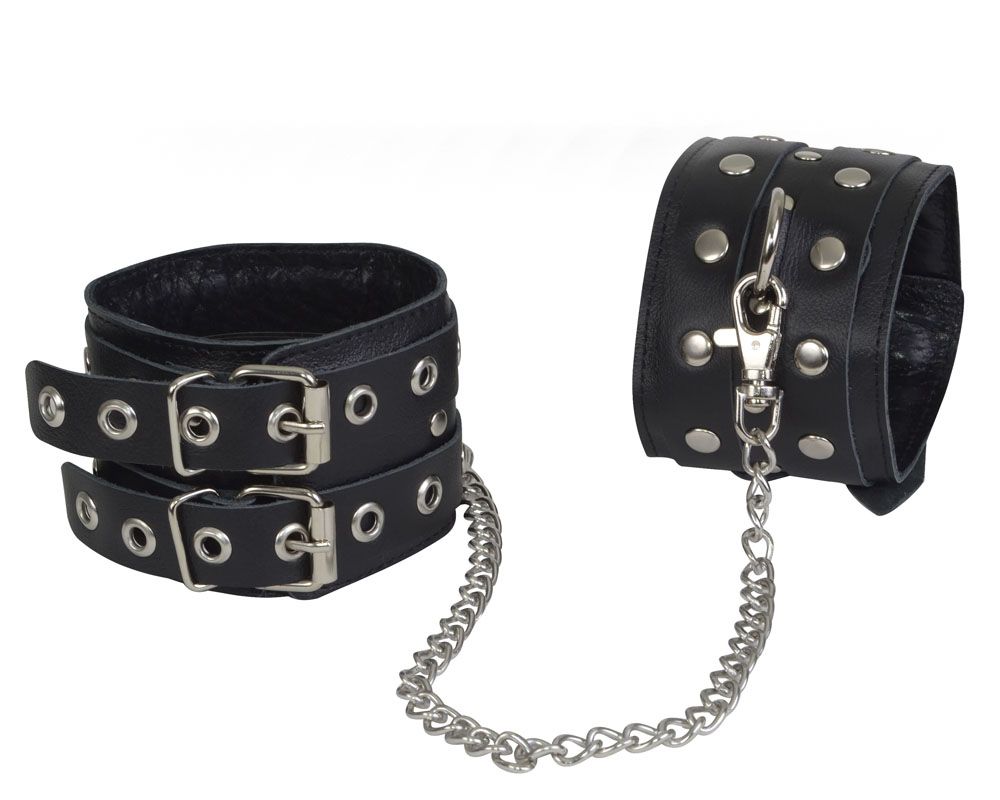 Чёрные кожаные оковы, соединенные цепочкой Sitabella 3070-1