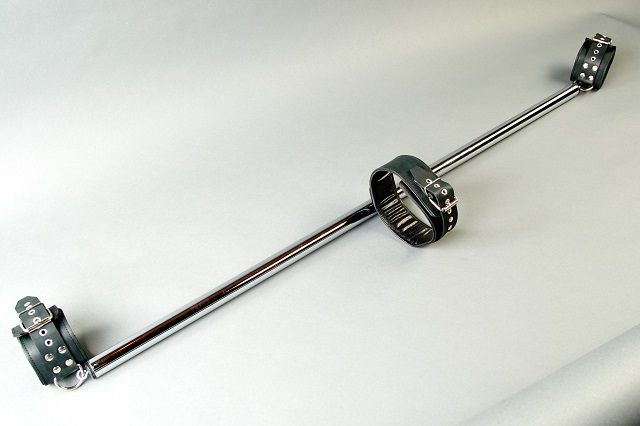Данный БДСМ комплект- коромысло изготовлен из натуральной кожи черного цвета и металлической штанги.С помощью данного бондажа вы можете надежно зафиксировать руки и шею.Размер наручей и ошейника регулируется при помощи ремешков. Максимальный обхват ошейника - 44 см.,минимальный - 33 см. Размер наручей максимальный - 31 см.,минимальный - 23 см.