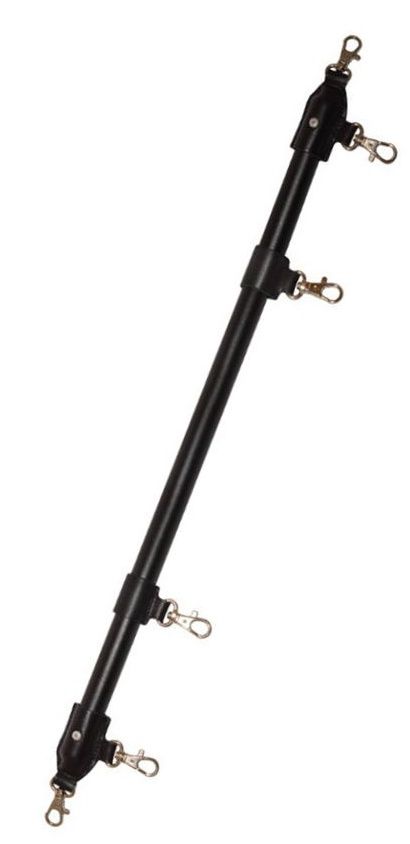 Фиксирующая BDSM-распорка от Sitabella поможет ограничить подвижность партнёра. Девайс состоит из цилиндрической металлической основы и кожаных креплений из натуральной толстой кожи, к которой прикреплены карабины для фиксации наручников или оков. Центральные фиксирующие элементы подвижны относительно основы, что даёт возможность регулировать распорку индивидуально. Карабины имеют никелевое покрытие.