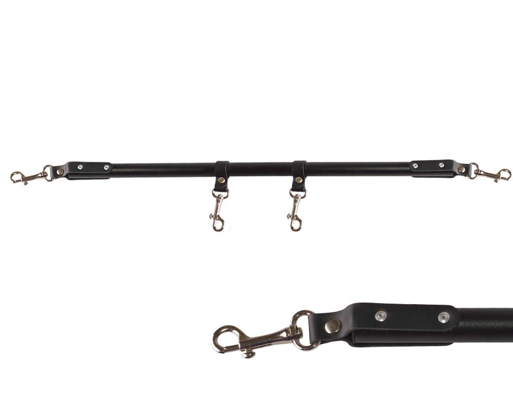 Чёрная металлическая распорка с кожаными ремешками и карабинами