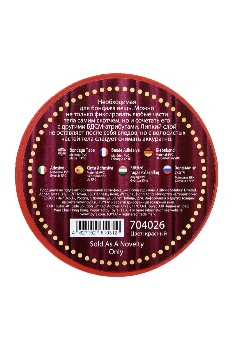 Необходимая для бондажа вещь. Можно не только фиксировать любые части тела самим скотчем, но и сочетать его с другими БДСМ-атрибутами. Липкий слой не оставляет после себя следов, но с волосистых частей тела следует снимать аккуратно. Ширина - 5 см.
