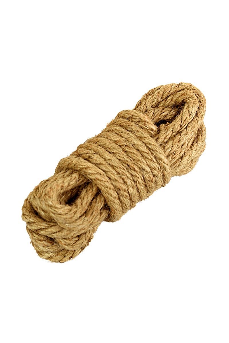 Джут - исторически правильный материал для изготовления бондажных веревок. Такая веревка немного колючая, и это дает дополнительную стимуляцию связываемому. Отрезок 5 метров можно использовать для обвязки отдельных частей тела или в комплекте с другими отрезками.