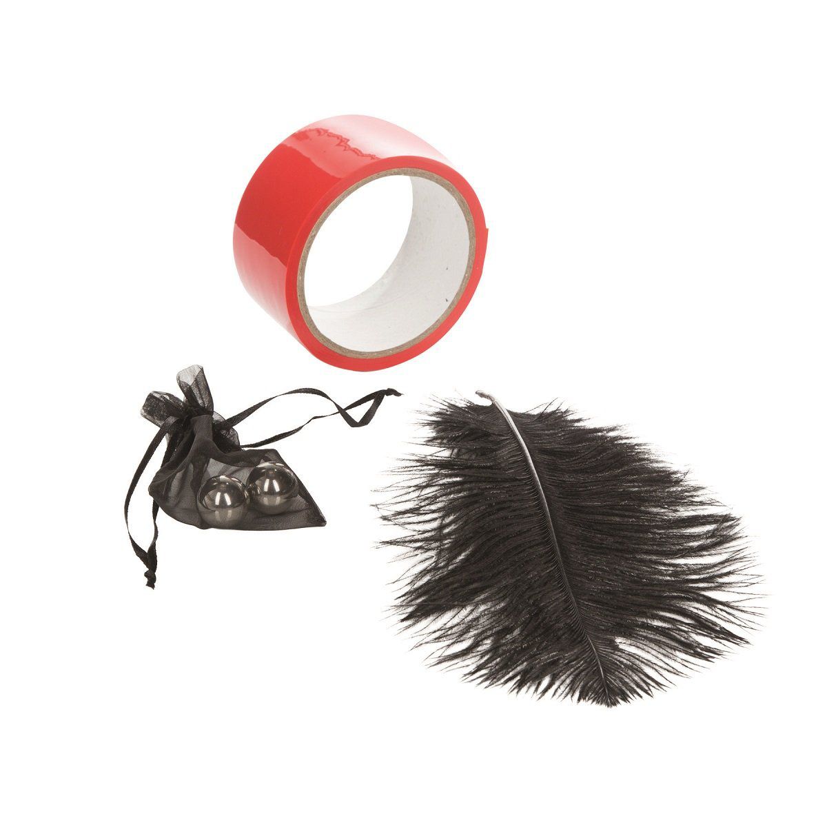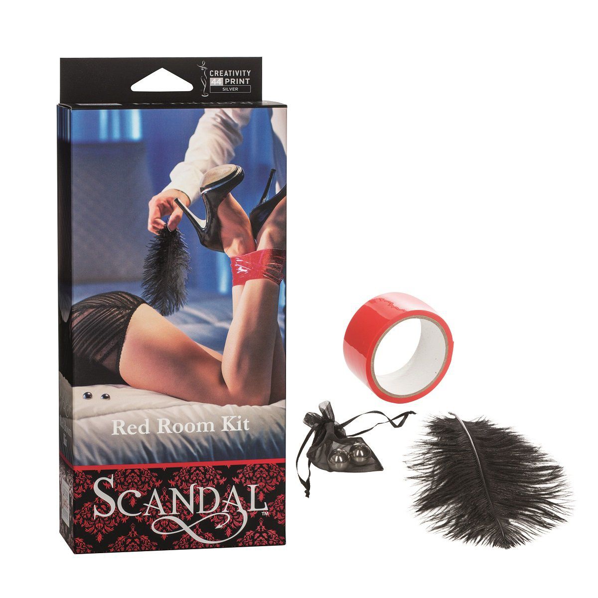Набор Scandal Red Room Kit из чувственной премиум коллекции эротических аксессуаров Scandal. Эластичной скотч - лентой зафиксируйте руки и ноги, ей же завяжите глаза. Мягким пером проведите по эрогенным зонам, разжигая страсть и вставляйте по одному металлические шарики. Экспериментируйте и воплощайте сексуальные фантазии. Дизайнерский нейлоновый мешочек для хранения шариков. Длина скотча - 1825 см. Ширина скотча - 4,5 см. Диаметр шариков - 2 см.