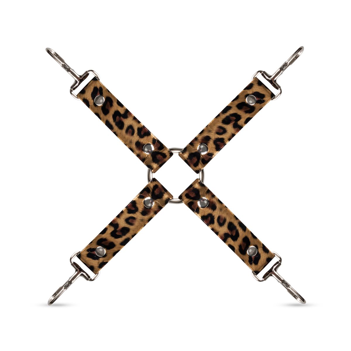 Леопардовый эротический набор Wicked Wildcat. В комплекте плеть, оковы, наручники, ошейник, крестообразный соединитель, поводок, зажимы на соски, кляп, маска на глаза.